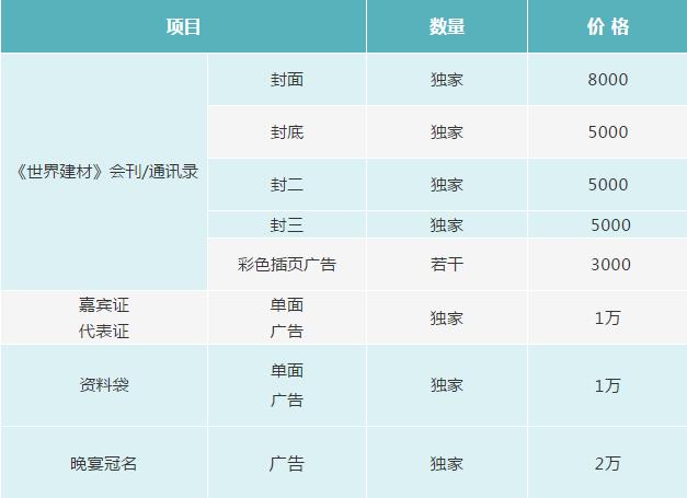 1、會議贊助:為廣泛宣傳先進技術,打造行業品牌,歡迎中外知名廠商協辦會議。會務組將在會議通知、網站、媒體廣告、會議消息、會議背景板、會議場地等媒介上顯著標明協辦單位名稱,同時將為協辦單位免費提供一版論文集彩色宣傳頁廣告,會議期間免費提供產品推介活動,安排展示場所并在會議上做專題報告,對企業的產品進行宣傳或在《世界建材》雜志和中國建材技術網上刊登廣告。協辦會議不低于3萬元,根據費用情況,提供相應或增值服務。提供會議禮品、辦公用品贊助,請及時與會務組取得聯系。